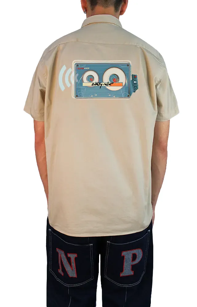 El diseño del logo de Bior Works Cassette en el frente le da un toque único y auténtico a esta camisa, que sin duda se convertirá en una pieza clave de tu armario. Además, su ajuste perfecto y su estilo versátil la hacen ideal para combinar con cualquier outfit urbano.