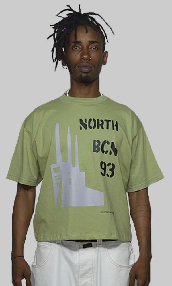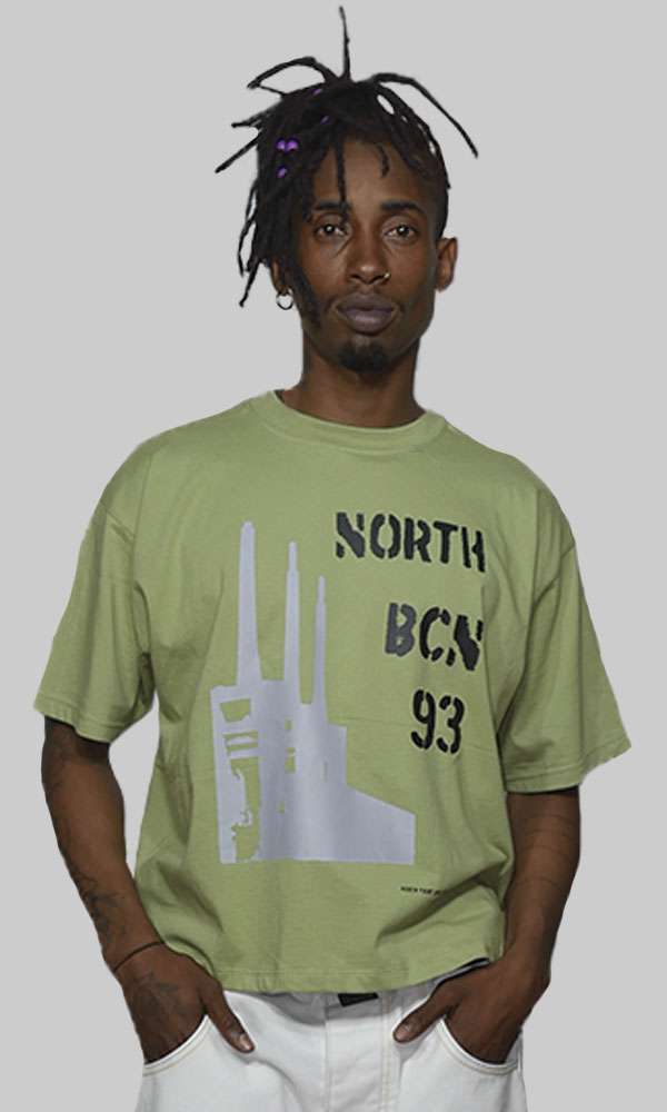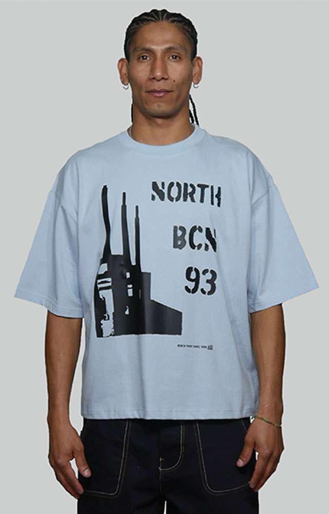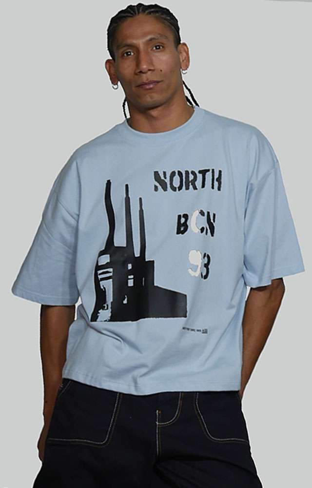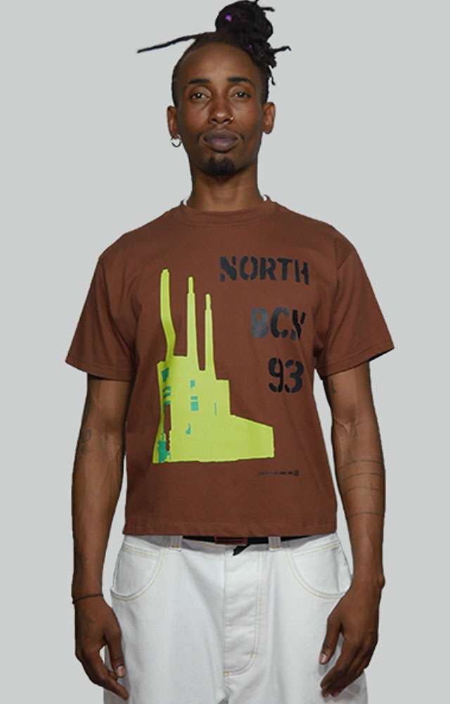 La camiseta Brutal  de North Point Wear está inspirada en la silueta arquitectónica de las Tres Chimeneas de Sant Adrià de Besòs, reinterpretadas desde una estética directa y contundente. El diseño combina la gráfica industrial con tipografía urbana “North BCN 93”, reforzando el vínculo con Barcelona y el origen de la marca dentro de la cultura streetwear.