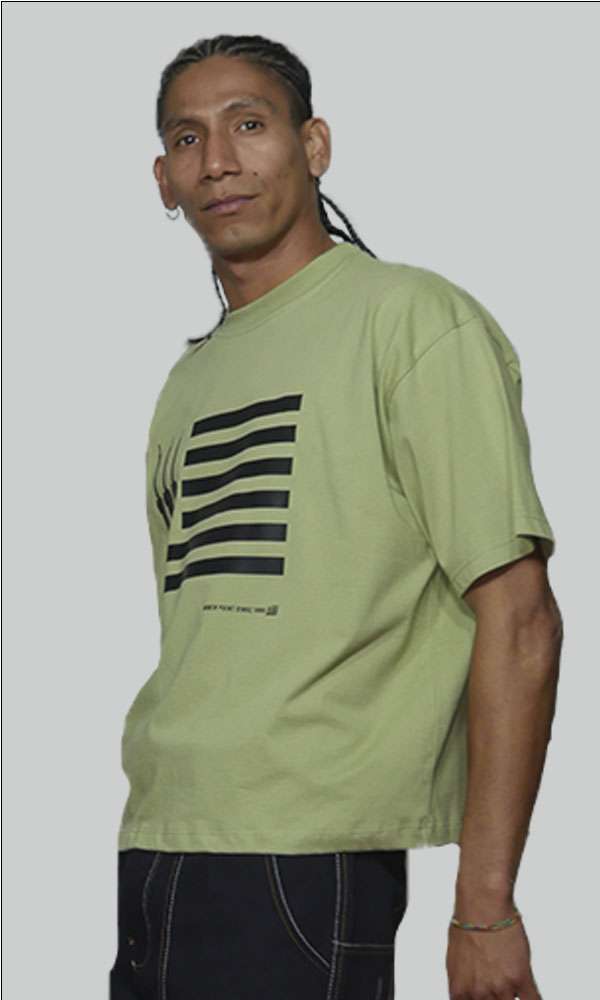 Confeccionada en 100% algodón, ofrece un tacto suave y cómodo para el día a día. Su fit relajado y el gráfico frontal de líneas aportan una estética minimalista pero con carácter, ideal para looks urbanos y versátiles.