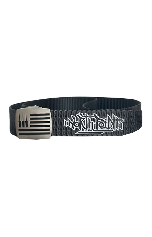 Cinturón unisex confeccionado en nylon tipo cinturón de seguridad, con hebilla metálica plateada de cierre rápido. Incluye el logo The Three Chimneys en la hebilla frontal y un segundo diseño en el extremo de la tira. Resistente, versátil y de talla única. Ideal para looks urbanos y oversized.