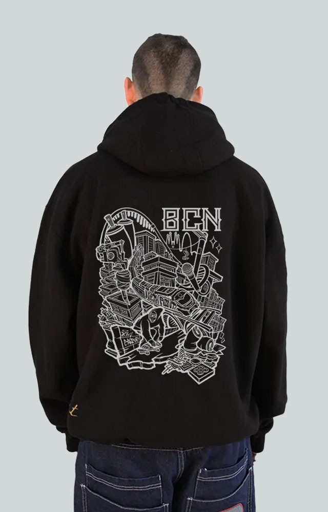Hoodie Gargufo es una sudadera de corte oversized confeccionada en un tejido de 430 g/m², compuesto por un 80% algodón y un 20% poliéster, que garantiza calidez, suavidad y resistencia. Presenta un diseño limpio con el logo Gargufo BCN en color blanco centrado en el pecho, mientras que en la espalda destaca una versión de gran tamaño del mismo logo, aportando fuerza visual y carácter streetwear. Una prenda robusta y con presencia, pensada para climas fríos y outfits urbanos con actitud.